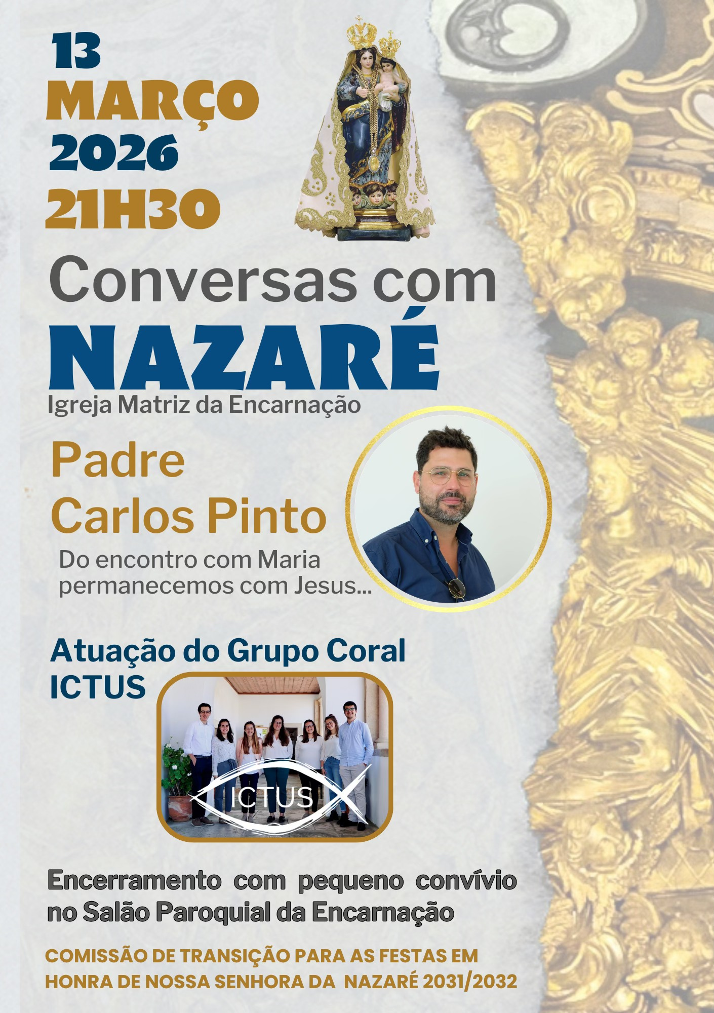 Dia 13 de março, às 21h30, na Igreja Matriz da Encarnação,
