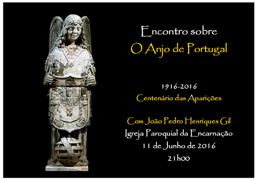 No sábado 11 de Junho de 2016, às 21, tivemos na Igreja Paroquial um Encontro sobre «O Anjo de Portugal, no centenário das aparições 1916-2016», com João Pedro Henriques Gil.