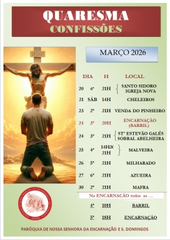 Calendário das celebrações penitênciais na vigararia de Mafra. Na paróquia da Encarnação, no dia 24,...